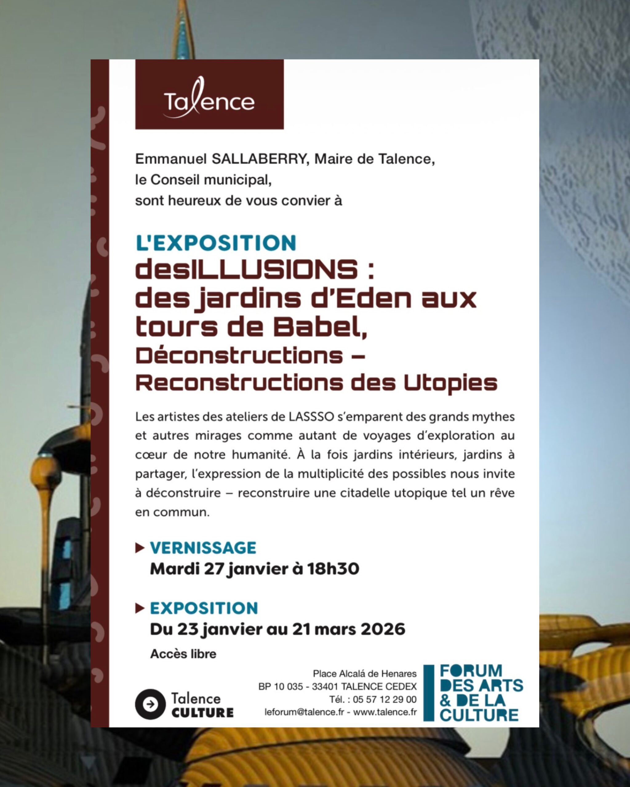 du 23 janvier au 21 mars 2026 – exposition collective – Forum des Arts et de la Culture de TALENCE (33)