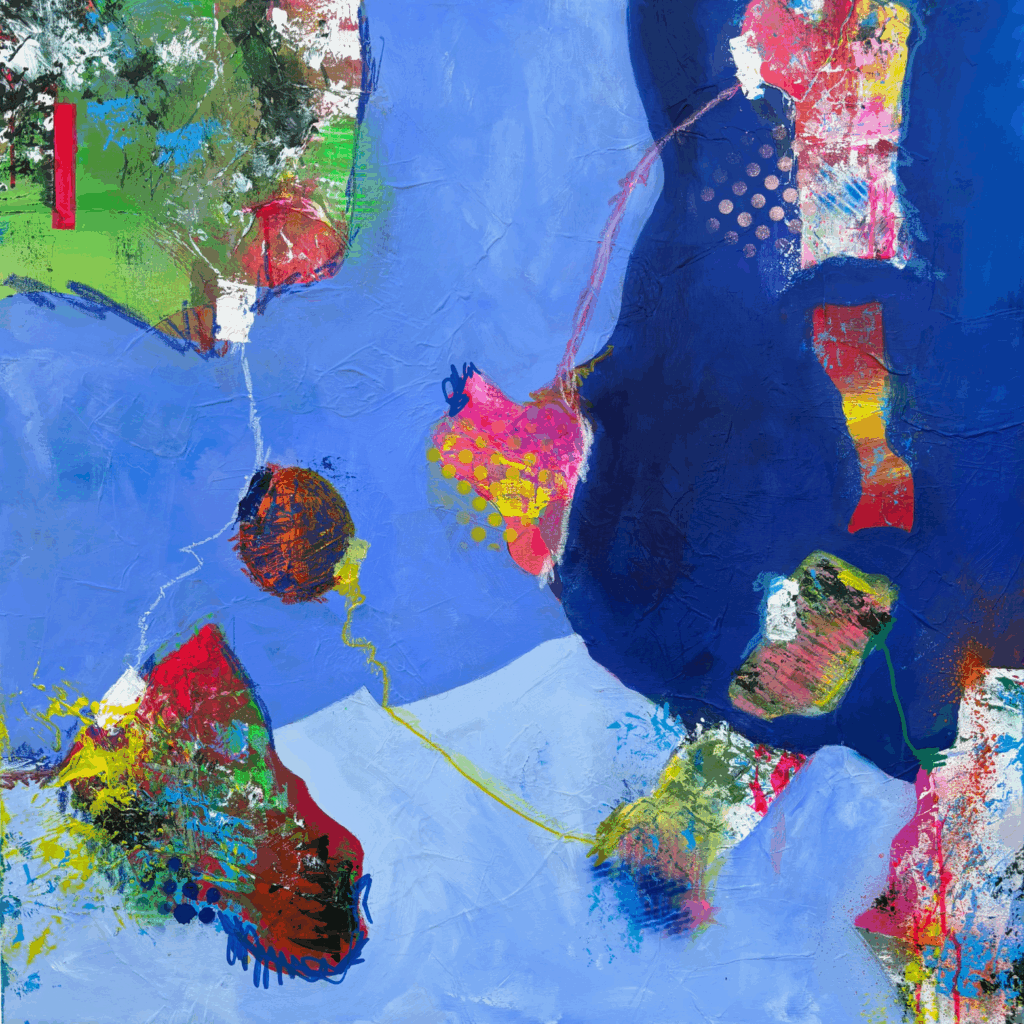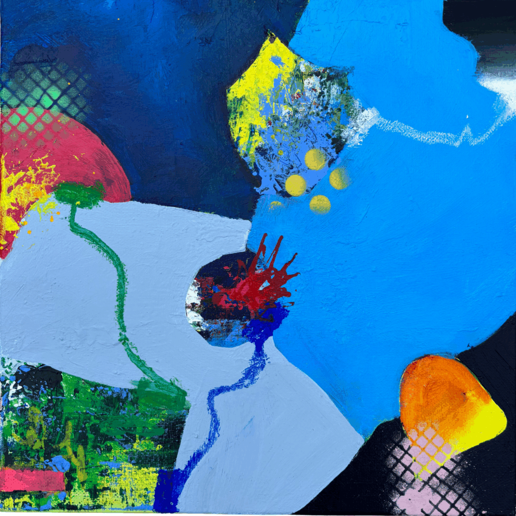 jardin bleu est une série où le végétal se rêve à travers l’abstraction, suspendu dans un espace chromatique dominé par les bleus profonds et les contrastes éclatants. Ici, la couleur ne sert pas à représenter, mais à évoquer — des fragments de nature flottante, des floraisons mentales, des territoires intérieurs où la matière et le souvenir du paysage s’entrelacent.