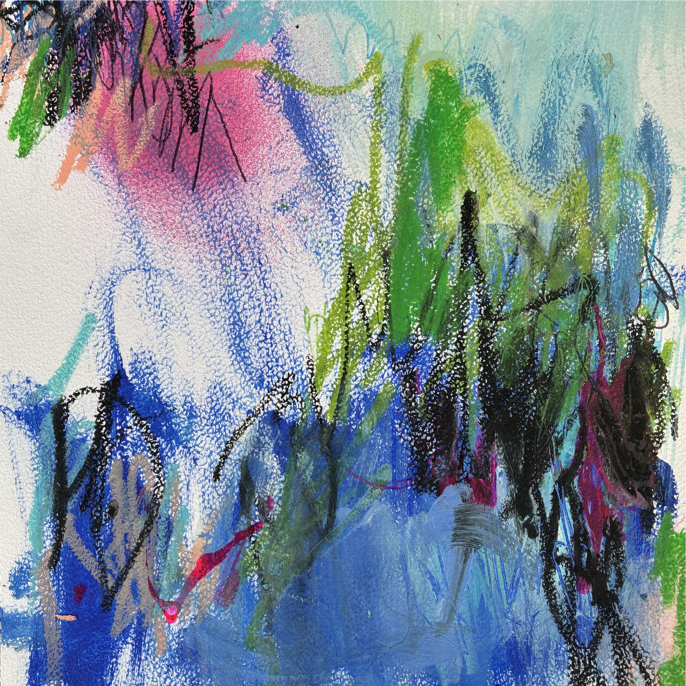 Acrylique, encre, pastel sur papier